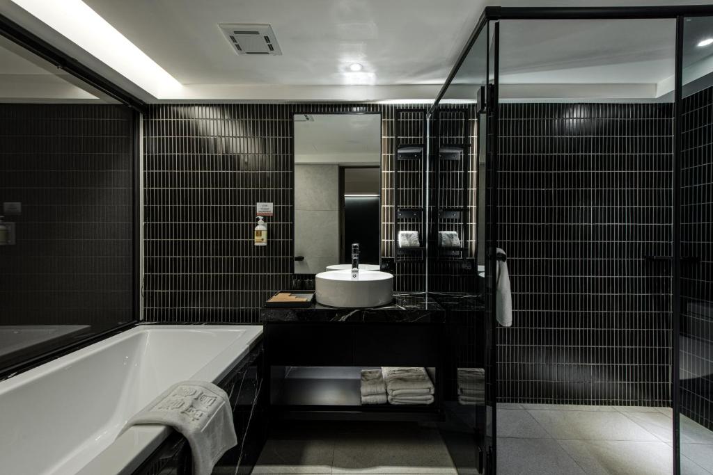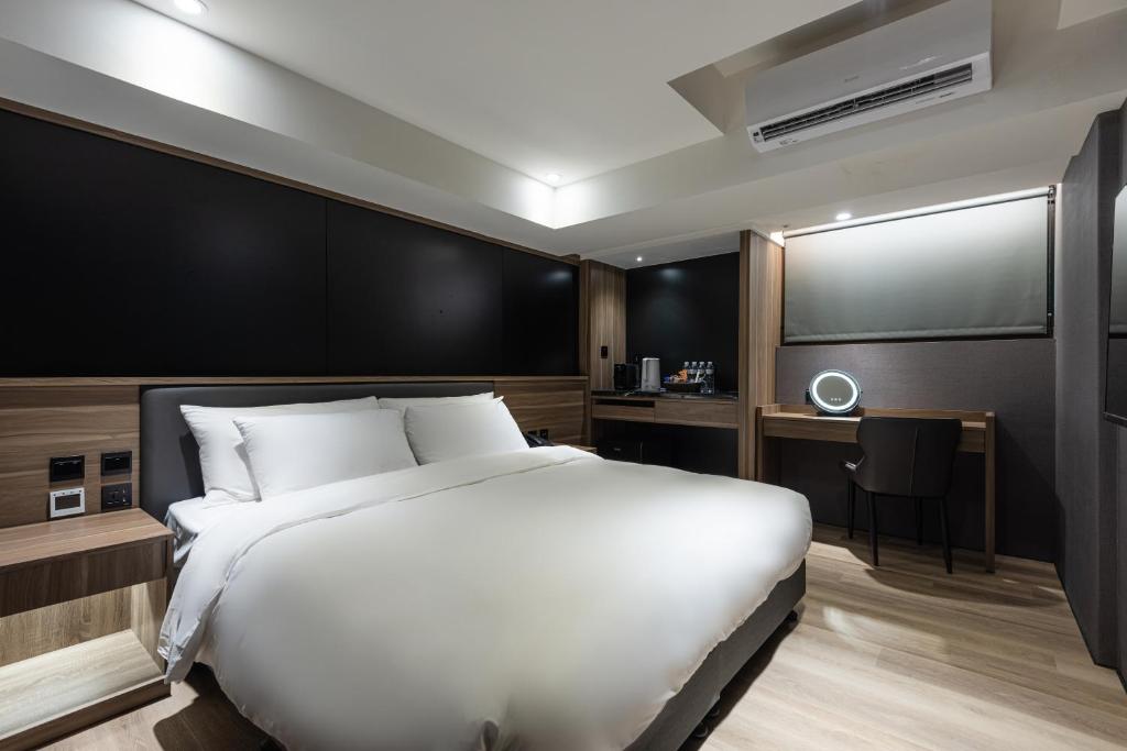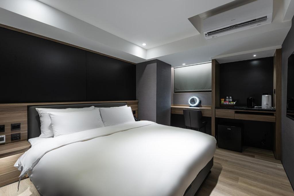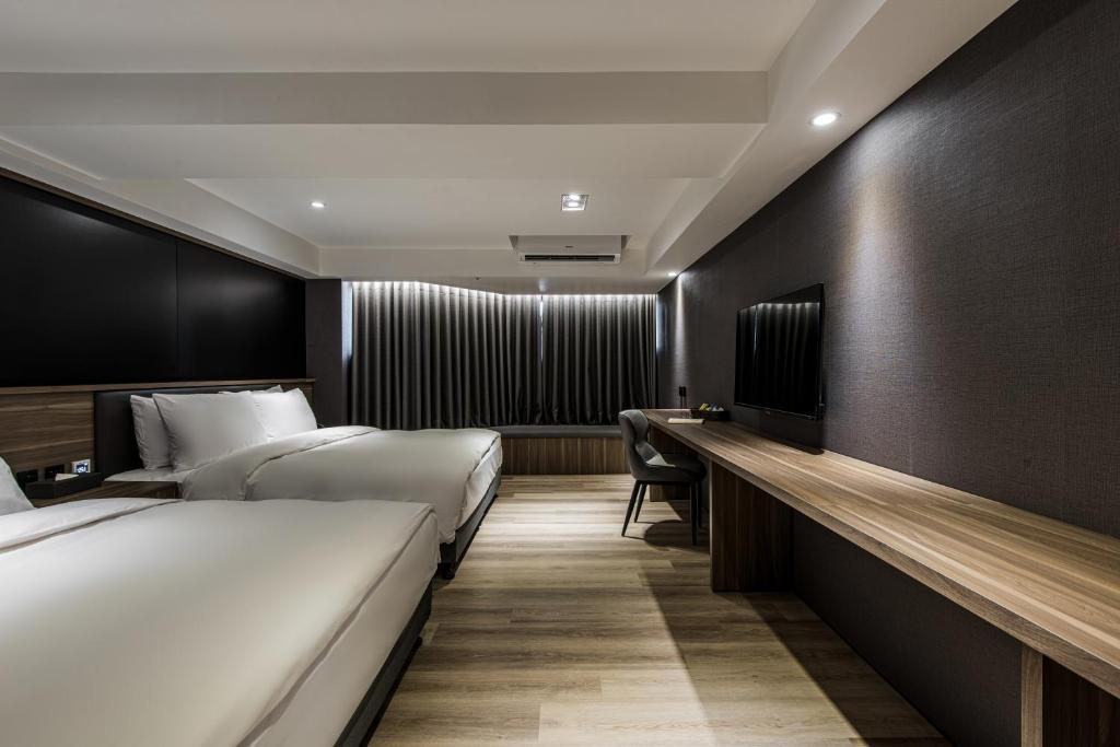 First, the negatives: 1. On the first day lying in bed, I clearly saw hair left by previous guests on the sheets, but since it was in the sheets, I didn't pursue it further. 2. I stayed for 5 days and 4 nights and only requested cleaning once, but the housekeeping did not clean the hair we left on the sheets, so we deduced that the sheets were not changed or cleaned, just simply folded. However, my boyfriend said the folding of the sheets was not done very well, feeling a bit rough. 3. The room phone, when trying to call the front desk, was found to be very dirty, looking like it hadn't been cleaned in a long time, covered in dust! Please make sure to improve this! Now, the positives: 1. When we entered the room, the air conditioning and lights were already on, making us feel very welcomed. 2. The bathroom was quite nice, the toilet was clean and smart, and the bathtub was spacious enough for two adults to bathe comfortably, with extra space to move around, which felt satisfying! 3. The room was large, with a railing by the window to place luggage and sit, making it easy to handle our bags without putting them on the floor. This is a plus. There were also plenty of drawers available for use, which was great. 4. The mattress was thick and warm, and very clean. However, the pillow was average, making my neck feel a bit uncomfortable. 5. There were many dining options near the hotel, with some within a few minutes' walk, and it was easy to take a taxi to further places. There were also several coffee shops nearby, convenient for those of us who need coffee. 6. The bottled water and snacks were well-stocked, and if there wasn't enough water, we could check at the reception downstairs, where the front desk would let us take some directly from the drinking area. Big shout-out to that *** which was super delicious! I want to buy a lot to take home next time I come to Taiwan because it's out of stock in Hong Kong! 7. The hotel does not have a dedicated parking lot, but there is an affiliated parking lot next door, which is convenient for guests. We didn't have to worry about parking, and the hotel also waived the parking fee, which was very convenient and appreciated! For this stay, I give it 8.5 points, and I hope to stay here again next time!