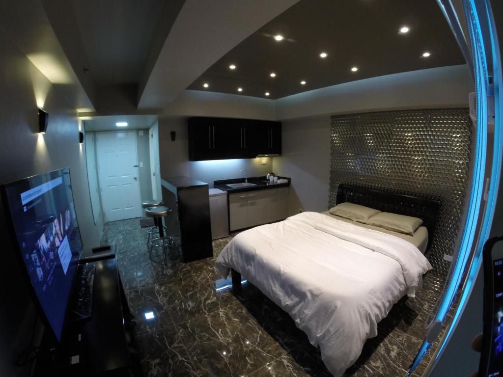 To be honest at first i thought everything was dubious, but tried it out simply because it was in agoda. The condotel had no proper parking space since most were owned by condo owners. I had to park in front, outside... but my car was safe and didn't had to pay too much attention to it. When i arrived, my contact person wasn't answering and replies were delayed but when i finally was able to reach her and check in... the room was so nice and even thought that i should rebook soon. Wifi was great. Tv had cable on. Aircon was just right. Sheets were clean and they even provided towels and complete set for cooking. Wish i brought stuff to cook. 😊 Overall my stay turned out to be just right since it was near my workplace. Guards were very trust worthy and i just had to give them my payment. Check out was a breeze. Thank God i took the risk to stay here. 😊