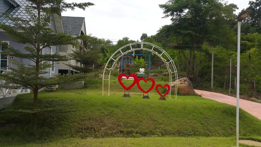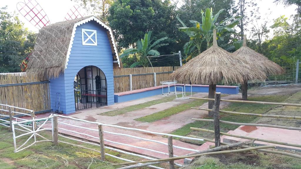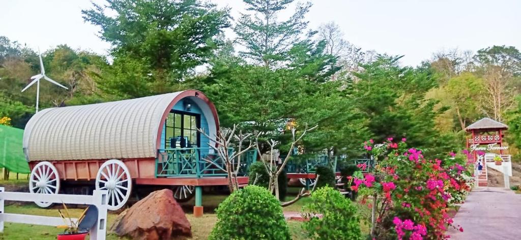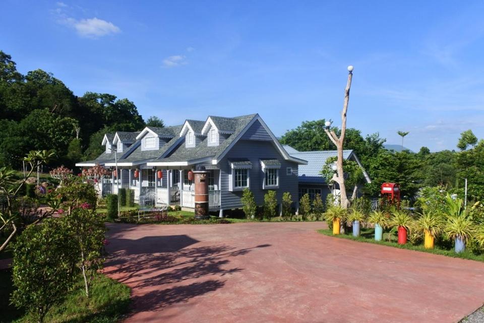 A relatively new resort located along National Route 12 in the eastern part of Phitsanulok Province, in Wantong District (near Kaeng Sorn Waterfall). While most of the resorts in this area promote the scenic views of the Kake River stream and the mountainous landscape, this resort differentiates itself by offering a beautiful view from a higher vantage point and high-quality bungalows inspired by European-style houses. What is particularly unique is the bungalow guest room modeled after the covered wagons from the American Westward Expansion era. Despite the limited space, the design captures the distinct curves of the covered wagon's roof and walls, and the concept of allowing guests to experience life inside a covered wagon is impressive. The well-maintained gardens and the contrast with the brand-new European-style houses are also remarkable, and coupled with the friendly demeanor of the staff, I felt that it truly embodies what a resort should be.