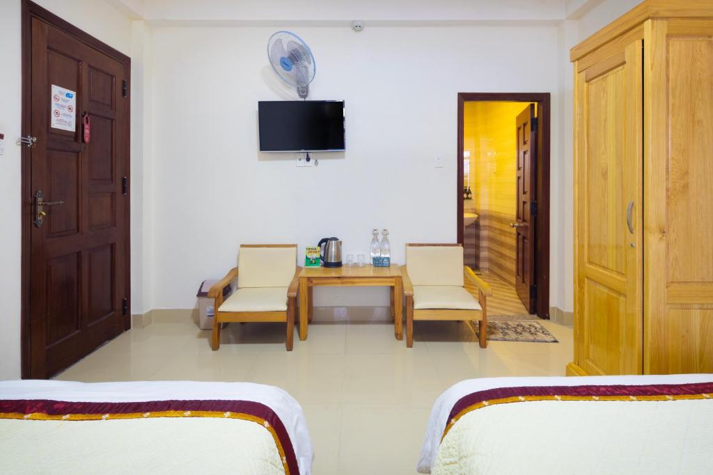 Unwind and Relax in the Shared Lounge/TV Area at MAI HOANG HOTEL