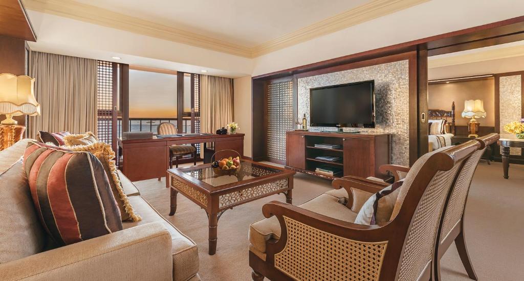 Experience the perfect blend of elegance and convenience in the beautifully appointed rooms of The Manila Hotel. Each room features air conditioning to keep you comfortable, along with blackout curtains that ensure restful sleep. Guests can unwind watching the television or step out onto the balcony or terrace to enjoy scenic views. Thoughtful touches such as plush bathrobes, soft linens, and fresh towels enhance your stay, while a refrigerator provides added convenience. Complimentary bottled water, instant coffee, and tea are available to refresh and energize you throughout your visit. For added comfort, modern toiletries and a hair dryer are provided, making your stay both luxurious and hassle-free. For those seeking extra space, select rooms include a separate living room, creating a perfect retreat after a day of exploring Manila.