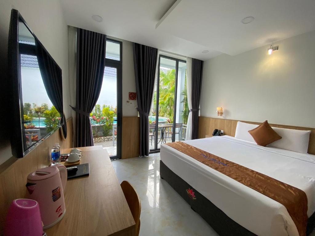 The hotel is a option to stay in the island if you can find a good offer in some applications. The pool is nice! We rating with just 3 starts for the next reasons: - The staff is unfriendly, just the guy is the most helpful but the girls are really annoying. When we arrive they don’t explain nothing just give our room and don’t say nothing about the hotel, services, etc. - The housekeeper is the worst we experienced. They always come at 8 am knocking the door to ask if you need cleaning. 4 days she wake up us at the same time. We try to explain that we want clean service after 10 am but she doesn’t understand and we had to speak with the guy. - If you don’t like animals, this is not your place, you will find a lot of geckos inside the room. - The motorbike price is expensive 200vdn/day we ask for offer because we would like rent during 9 days and the girl say not possible. If you are looking to rental check close to the airport they have the best service. For just 150k. - If you don’t want rental motorbike this hotel is not a good option for you. Grab are not available in this area ( really difficult get it ) In the corner of the street there are a good cafe with a lot of options. The place have a huge potential but need improve the service.