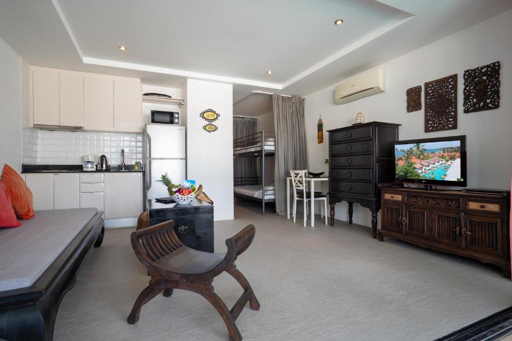 At Sai Naam Lanta Residence, we offer a wide range of exquisite room options to suit every traveler's needs. Our 1 Bedroom Pool View Apartment provides a spacious and comfortable stay, featuring a Sofa Bed and Double Bed. For those seeking a unique experience, our 1-Bedroom Apartment with Terrace and Pool Access offers the perfect blend of relaxation and convenience, with a Bunk Bed and Double Bed.