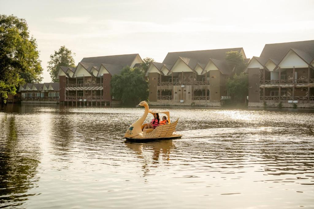 When arriving at the room, I was surprised by the quality of the room received. The room is spacious, clean, with a large solid bunk bed that looks new like it was just renovated, unlike the photos which looked quite old. The bathroom is large, with 2 showers and 2 toilets. The air conditioning is cool, and the refrigerator is very cold (you could chill beer in it). The swimming pool is quite spacious, and children can play happily, with 4 sizes of slides and separate pools for kids, teens, and adults that are well designed. There are pedal boats available, and the staff provide good service. The breakfast is acceptable. But unfortunately, I encountered a company party that was held at the activity lawn, with a stage for live music and loud music playing until ten minutes past midnight. I couldn't sleep with the loud music playing from early evening until midnight, shaking the house. Even the termites in the wood around the bathroom made noise like rain. The sound of the termites was the loudest; I've never heard termites moving around like this in my life. The accommodation is good; I would recommend it. But before booking, you might want to call the resort to check so you won't randomly hit the jackpot of a concert that runs until midnight, making it impossible to sleep like we did.