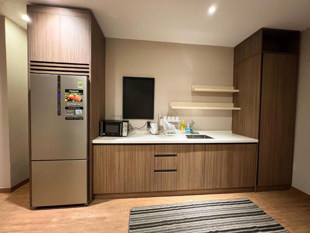 KS has an easy-to-find address, right on main street 3/4, next to Điện máy Chợ Lớn. Both sides of the road have affordable dining and coffee options. Initial impression: when I first arrived and saw the narrow facade, I felt a bit anxious, but I was surprised to find such a spacious and comfortable interior. My family of four stayed in a 100m2 suite with 3 bedrooms, 2 bathrooms, a living room, and a kitchen. Pros: 1) Spacious area, feeling airy yet cozy; 2) A terrace and a hallway surrounding 3 sides, with a flower garden adding a friendly touch; 3) Very elegant color scheme, clean, pleasant to the eye, and simple yet stylish decor; 4) High-quality furnishings, well-maintained; 5) The view overlooking the valley behind the house is very open and beautiful while still maintaining privacy. Cons include a few areas: 1) The lighting system design lacks professionalism; it's okay in terms of color temperature but does not consider visual tasks properly, with some areas improperly lit causing glare (like at the head of the bed), lacking focused light where needed (like at the sink), not accounting for shadow play (for the range hood above the stove), and inadequate pre-planning (the wardrobe door opens into the bedside lamp); 2) Allowing strangers and staff to walk around the hallway without warning creates a sense of insecurity and a lack of privacy for guests; 3) A couple of areas with cracked plaster on the walls; 4) No private parking, requiring us to rely on free parking at a nearby local government office 300m away. Conclusion: The advantages clearly outweigh the disadvantages; I am ready to return here, as it is an ideal accommodation for a small family that values privacy, spaciousness, and is willing to cook simple meals.