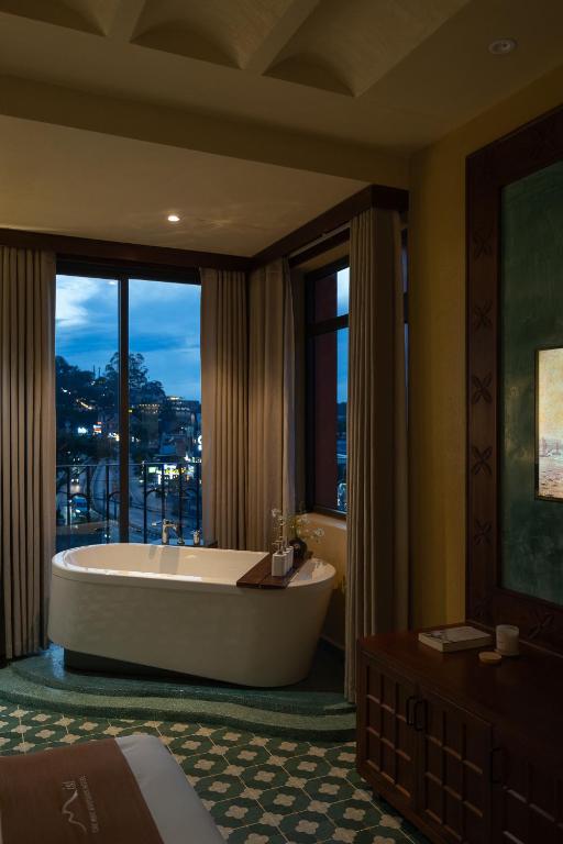 I just had a trip with my small family to Da Lat and chose to stay at a truly impressive hotel. From the space, amenities to the service, everything exceeded expectations. 🛏️ Clean rooms with elegant design The room I stayed in had a blend of classic and modern style, with a uniquely vintage blue floral tile floor, spacious bed, and an option for an additional topper if you want a softer sleep. A big plus is the carefully curated space, from the curtains, wooden ceiling to the cozy wooden furnishings. 📺 Fully equipped, including a smart TV The wall-mounted TV is right in front of the bed, which is quite convenient since I have a small child. The room also features a desk, hairdryer, kettle, and a fully stocked minibar – very handy for guests. 🛁 Bathtub with a view of the pine forest I absolutely love this feature: the bathtub is placed next to a large window overlooking the pine forest and valley. Soaking in warm water in the early morning or evening while watching the clouds lazily drift by is a very relaxing experience. 🌲 Stunning views – a specialty of Da Lat From the room's window, you can admire the dreamy, misty sky of Da Lat. There’s no need to go far; just sitting in the room, you can fully capture the essence of "Da Lat." 🤝 Friendly and professional staff From the moment I checked in, I was warmly welcomed. The staff is very attentive, ready to assist when needed, and creates a welcoming, comfortable atmosphere. ✅ Summary: This hotel is definitely one of the worthy choices when visiting Da Lat. I rate it 9.5/10, very satisfied and will definitely return next time!