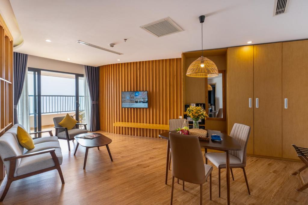 Satisfied with the amount I spent. However, there are still some points that can only be rated as acceptable, for example: - The pool is quite small, and when there are many guests, it's only enough to soak in, but on the plus side, the hotel staff constantly provides fresh towels for guests to dry off. - The geographical location is right at the beginning of Thuy Van Street, so there are not many amenities and it's not as lively as the middle section, especially since a new beach is under construction. - The parking lot is somewhat lacking compared to the number of guests renting rooms, leaving few spots for personal vehicles. However, other services are very good and professional. The breakfast buffet is delicious and offers a variety of dishes. The rooms are clean, and guests' requests are listened to and arranged promptly.